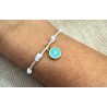 Sorprende a tus invitados creando a mano los detalles de tu fiesta de bautizo o comunión, regalándoles esta preciosa pulsera con colgante cruz en color turquesa que podrá llevar todos los días para recordar ese bonito día. El color que tiene el cordón en la foto es blanco.