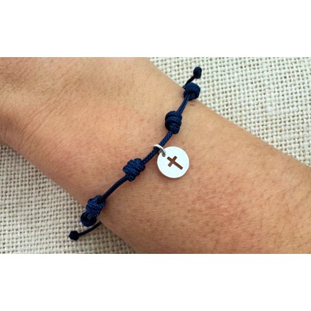 Sorprende a tus invitados creando a mano los detalles de tu fiesta de bautizo o comunión, regalándoles esta preciosa pulsera con colgante cruz que podrá llevar todos los días para recordar ese bonito día. El color que tiene el cordón en la foto es granate.