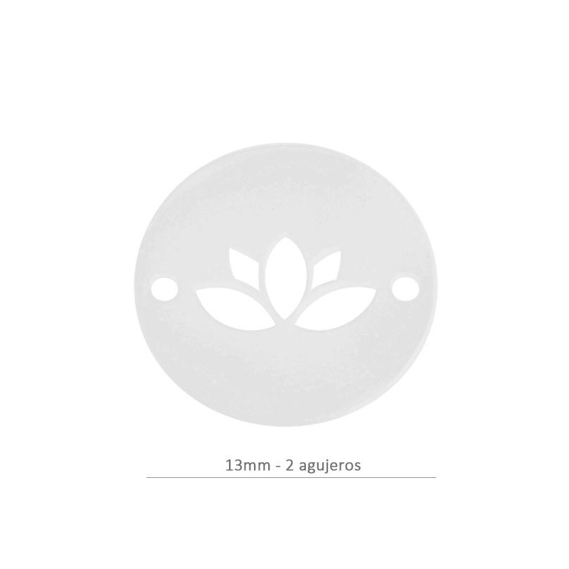 Entrepieza flor de loto con dos taladros en plata de ley 925. Fabricada en España.