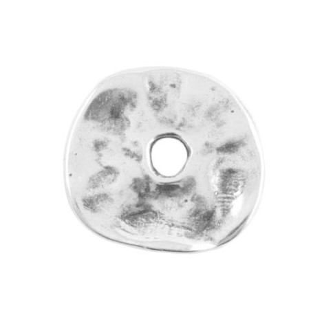 Disco megalítico en zamak con baño de plata. La bolsa contiene 1 unidad. El diámetro es de 28x31 mm. y el taladro es de 5 mm.
