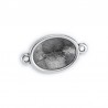 Entrepieza con dos asas en zamak con baño de plata para cristal cabuchón de 14x10 mm (el cristal no viene incluído). Le recomendamos pegar ambas piezas con nuestro pegamento especial para joyería con referencia 7405.