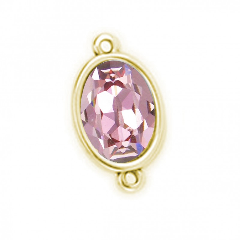 Entrepieza Swarovski con Swa 4120 14x10 mm color Light Rose. Baño oro