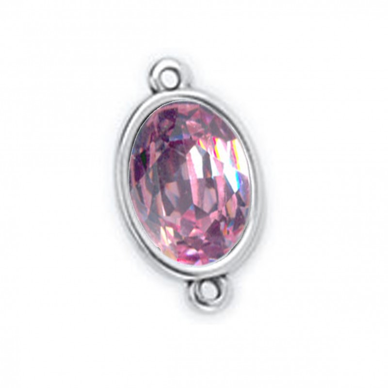 Entrepieza con dos asas en zamak con baño de plata con cristal cabuchón Swarovski en color Antique Pink 14x10 mm. Le recomendamos pegar ambas piezas con nuestro pegamento especial para joyería con referencia 7405, ya que no vienen pegadas.