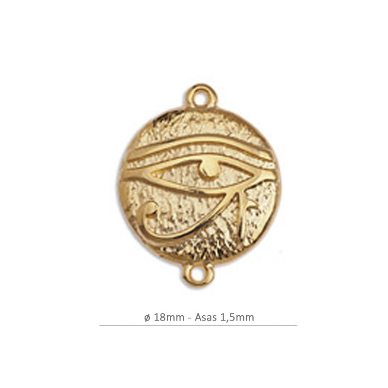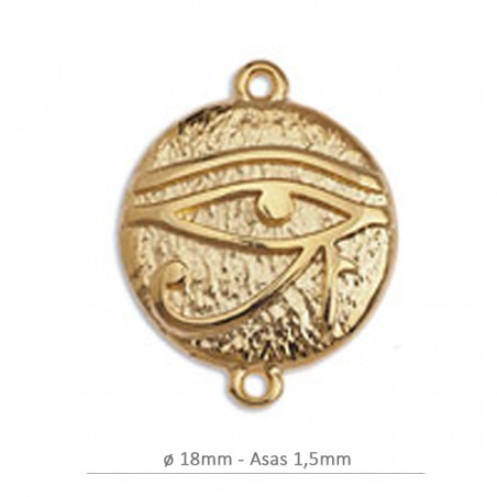 Entrepieza con dos anillas ojo de Ra de 18mm. Zamak bañado en oro. Precio por unidad.