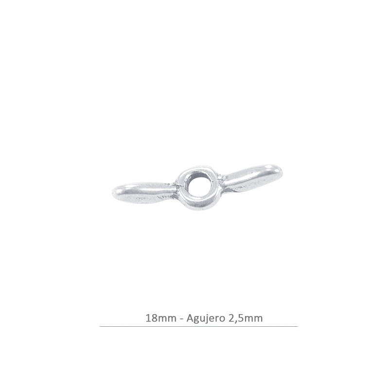 Entrepieza 18mm agujero de 2.5mm. Zamak con baño plata. Precio por bolsa, cada bolsa contiene dos unidades.