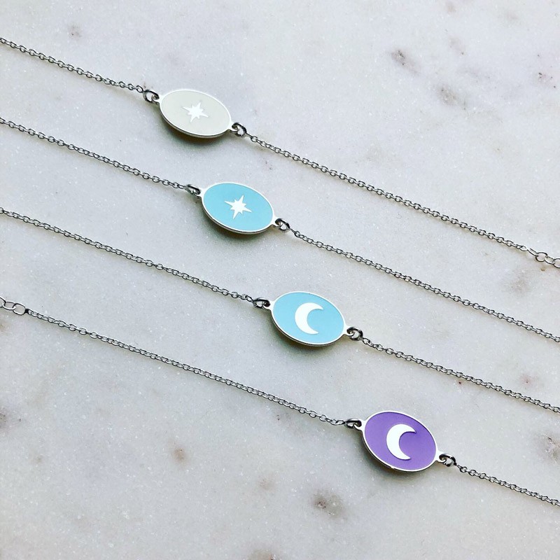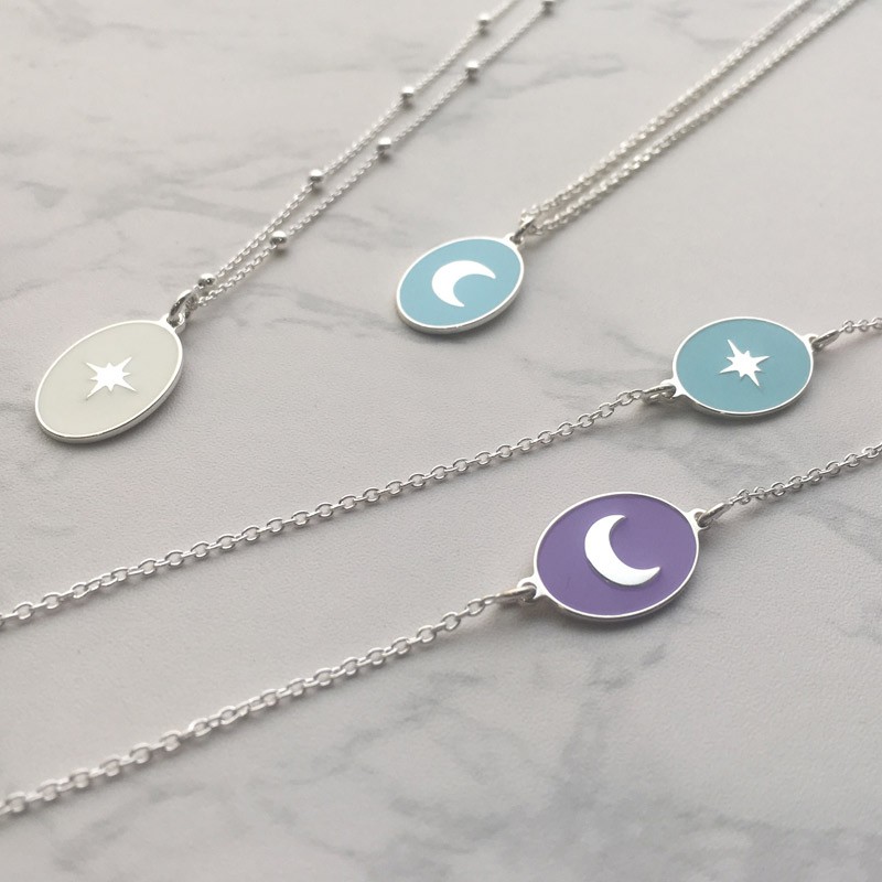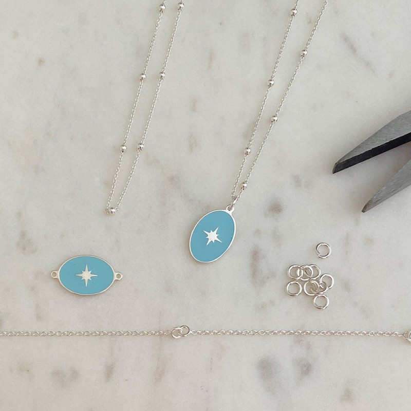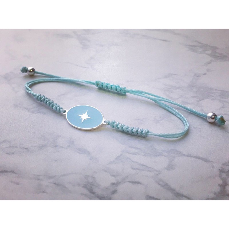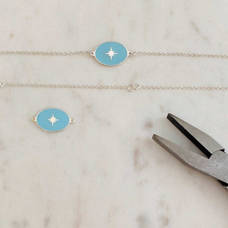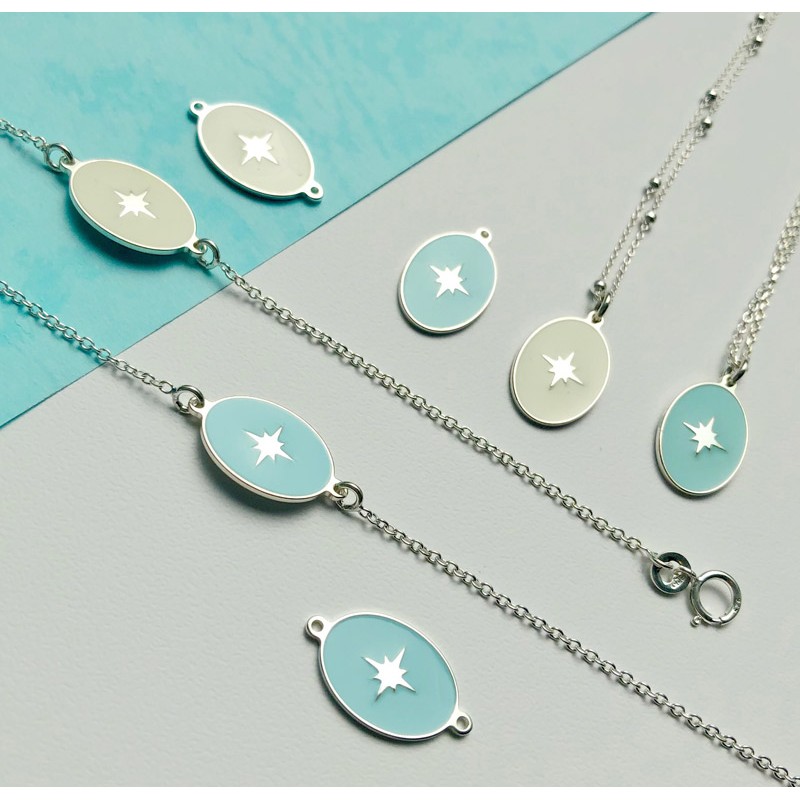 Entrepieza oval esmaltado azul con estrella polar y dos asas en plata de ley 925. Fabricada en España.