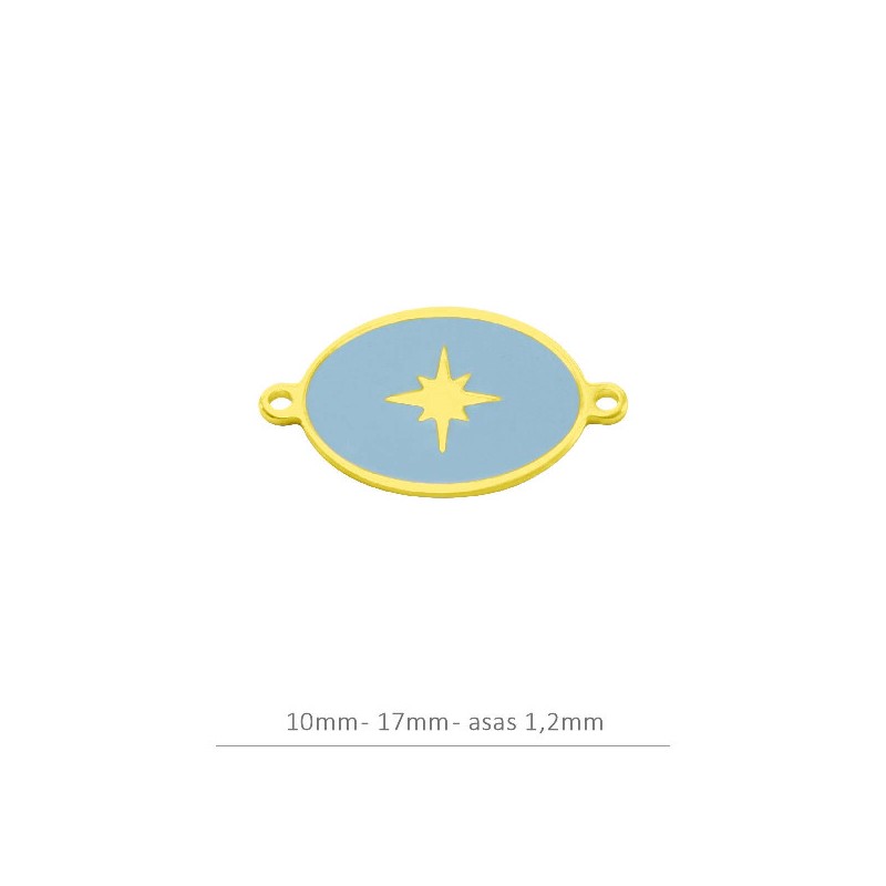 Entrepieza oval azul con estrella polar baño oro 17 largo - 10 ancho y asa 1,2 mm