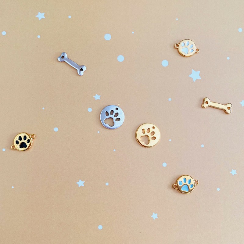 Entrepieza huella esmaltada azul en zamak con baño de oro 24k.