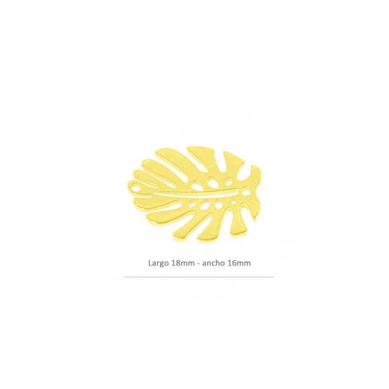 Entrepieza hoja de monstera con dos taladros en plata de ley 925 con baño de oro de 18k. Fabricada en España.