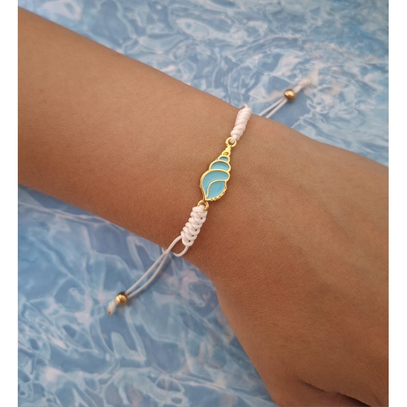 Entrepieza caracola esmalte turquesa. Zamak con baño de oro 24k.