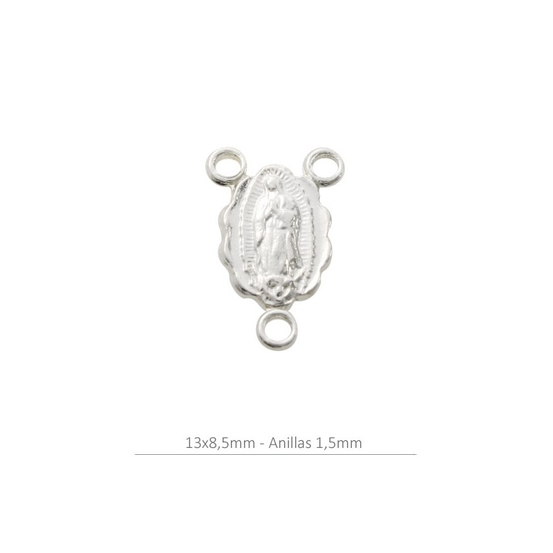 Entrepieza rosario con tres anillas en plata de ley 925. Fabricada en España.