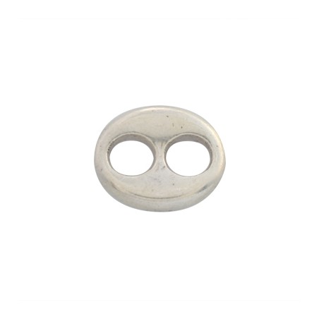 - Calabrote en zamak con baño de plata. - El tamaño es de 17x14x7 milímetros y el taladro es de 5 milímetros. - El precio es por unidad.