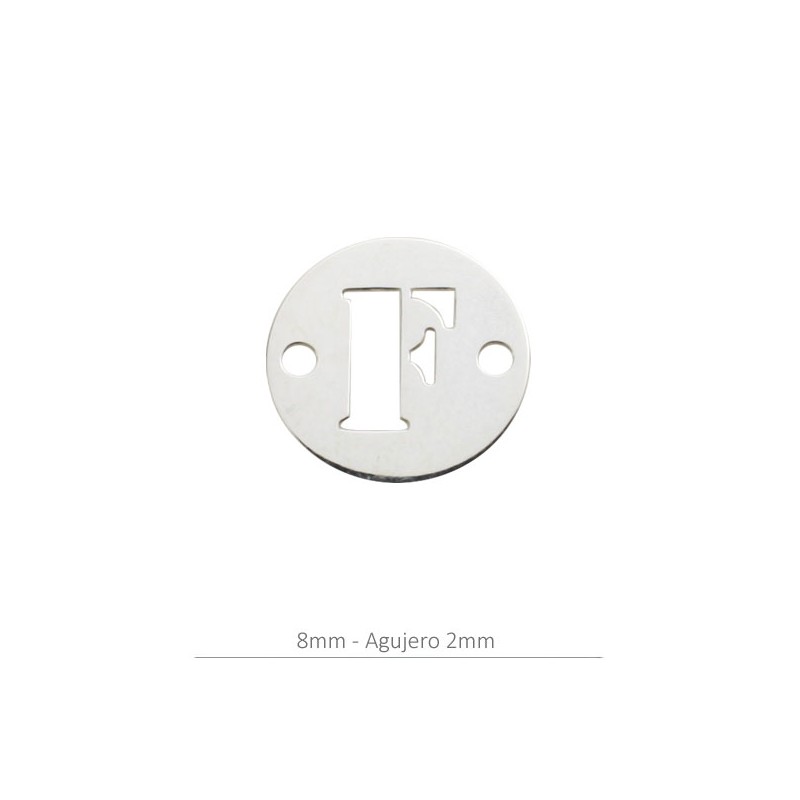 Entrepieza Charm redondo letra F. 8 mm con taladro 1.2 mm