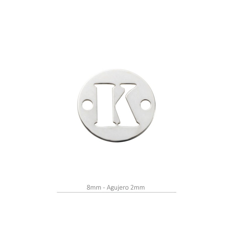 Entrepieza Charm redondo letra K. 8 mm con taladro 1.2 mm