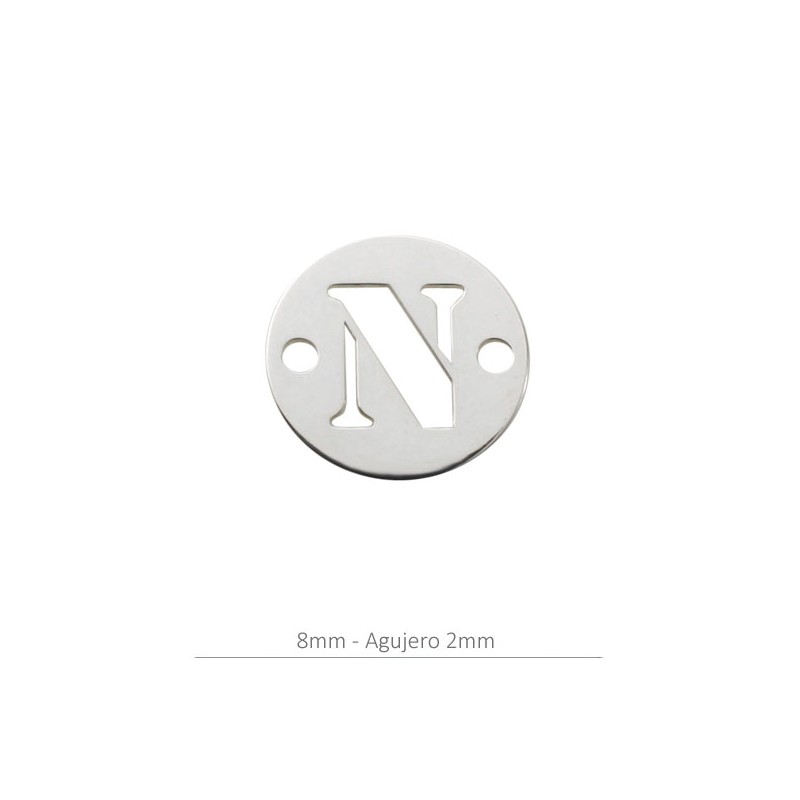 Entrepieza Charm redondo letra N. 8 mm con taladro 1.2 mm