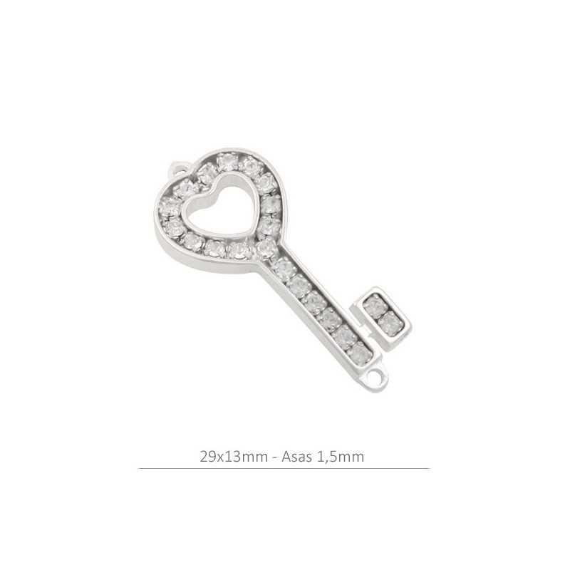 Entrepieza llave 29 x 12.5 mm con 2 asas y cadena strass Swarovski