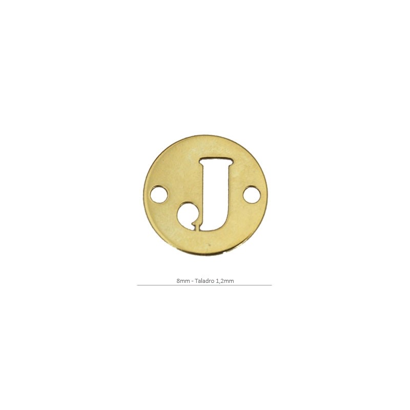 Entrepieza redonda con dos taladros letra J en plata de ley 925 con baño oro 18k. Fabricada en España.