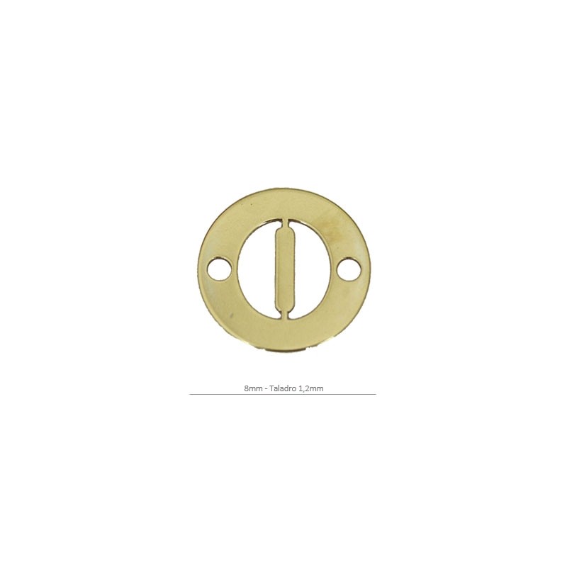Entrepieza redonda con dos taladros letra O en plata de ley 925 con baño oro 18k. Fabricada en España.