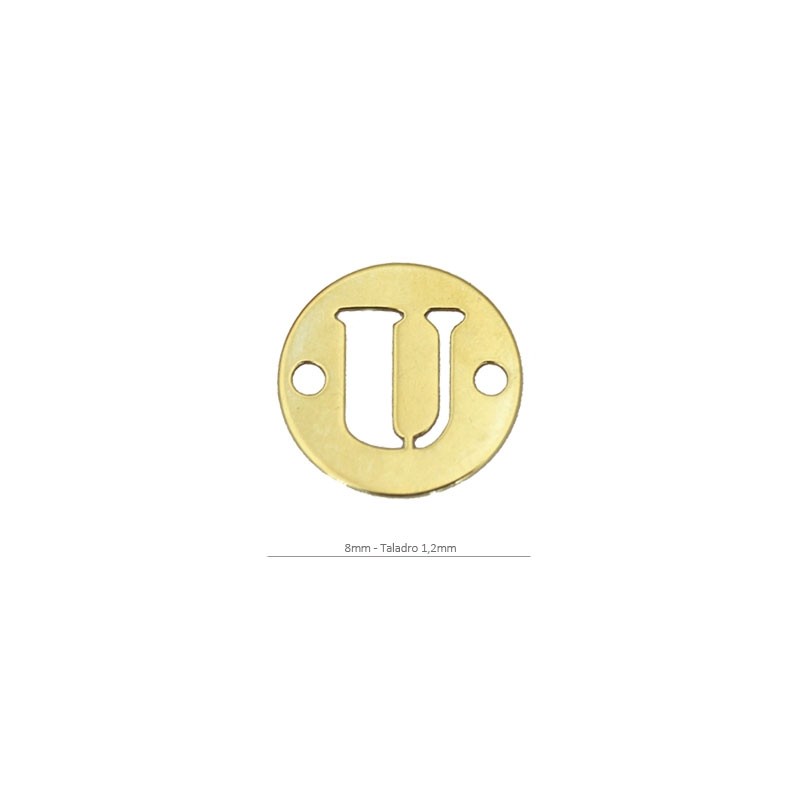 Entrepieza redonda con dos taladros letra U en plata de ley 925 con baño oro 18k. Fabricada en España.