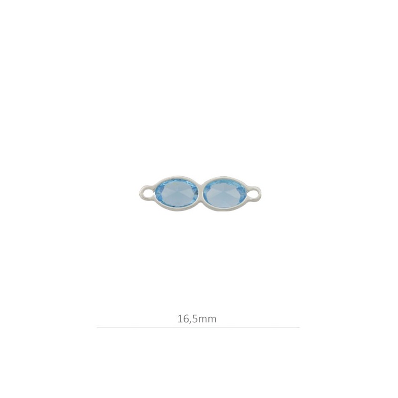 Entrepieza con dos cristales Swarovski en color Aquamarine de 16,5 mm con dos asas en plata de ley 925. Fabricada en España.