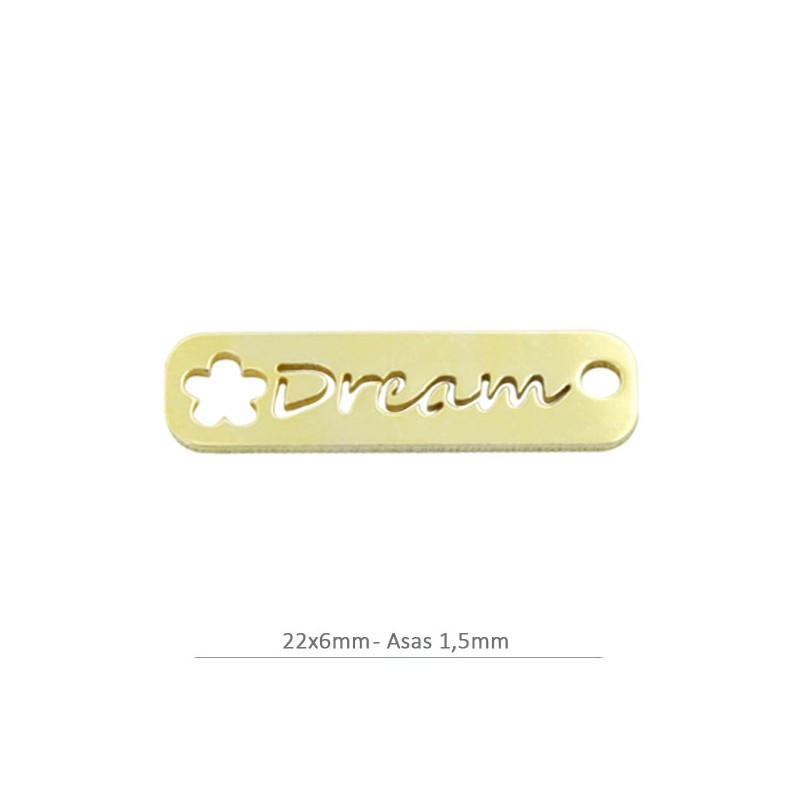 Chapa con mensaje "Dream" 22x6mm con baño oro