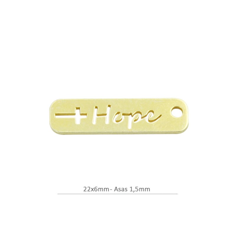 Chapa con mensaje "Hope" 22x6mm con baño oro