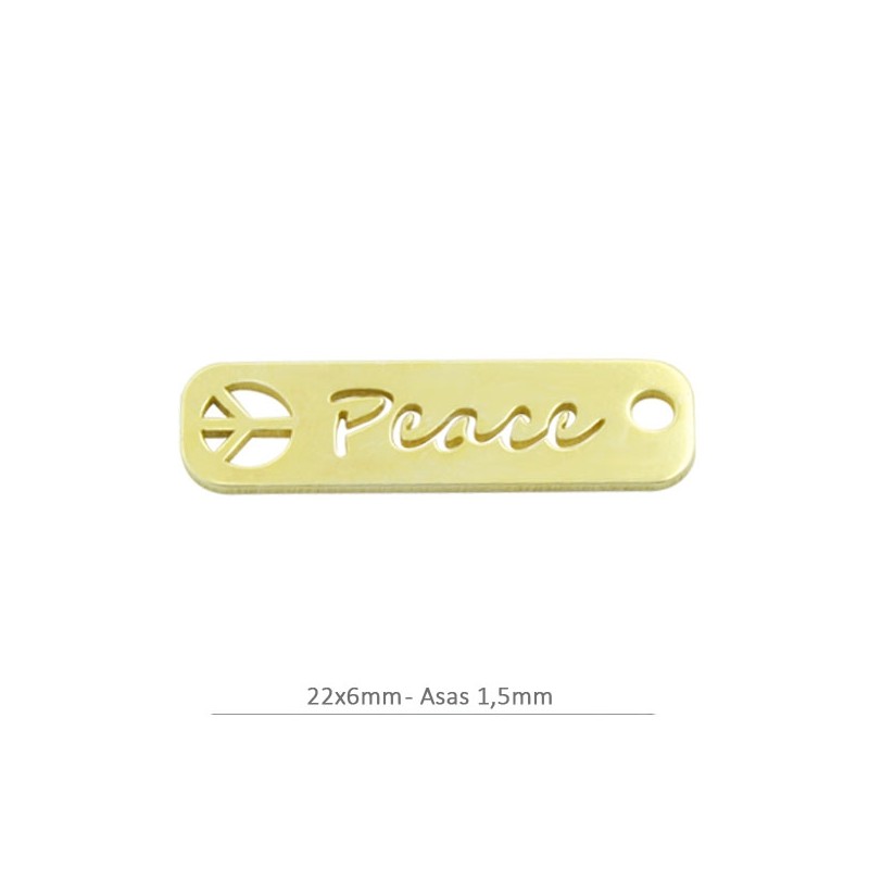 Chapa con mensaje "Peace" 22x6mm con baño oro