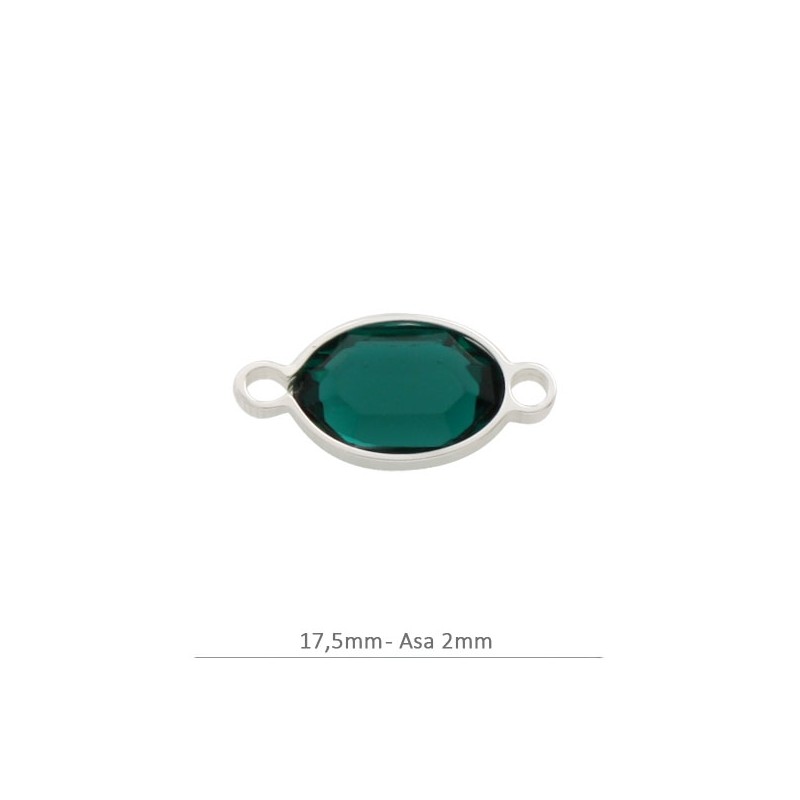 Entrepieza redonda con cristal Swarovski en color Emerald de 17,5 mm con dos asas en plata de ley 925. Fabricada en España.