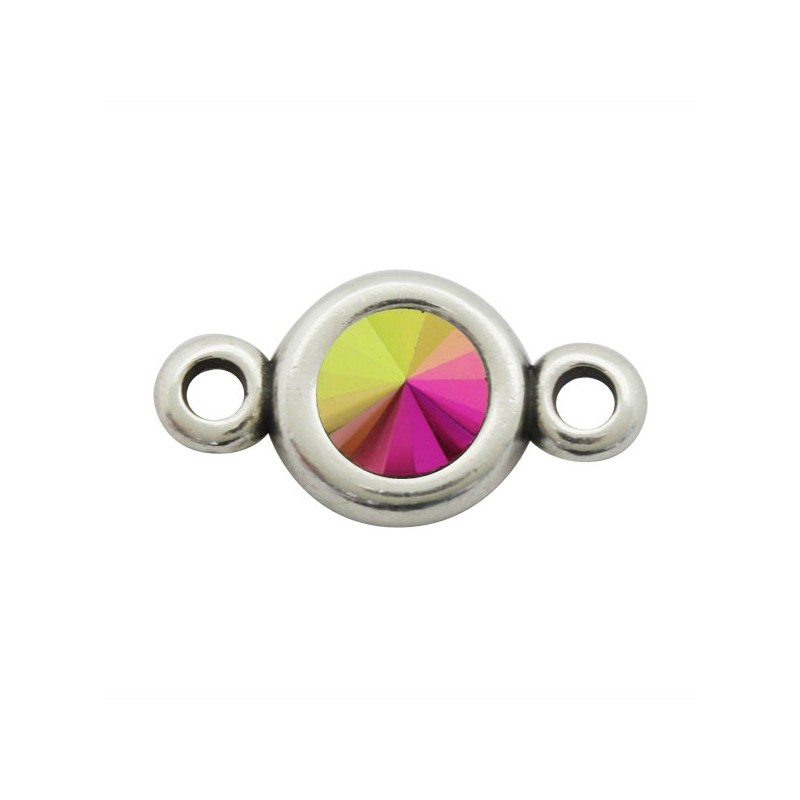 Entrepieza con dos asas en zamak con baño de plata con cristal Swarovski en color Rose Gold. Le recomendamos pegar ambas piezas con nuestro pegamento especial para joyería con referencia 7405, ya que no vienen pegadas.