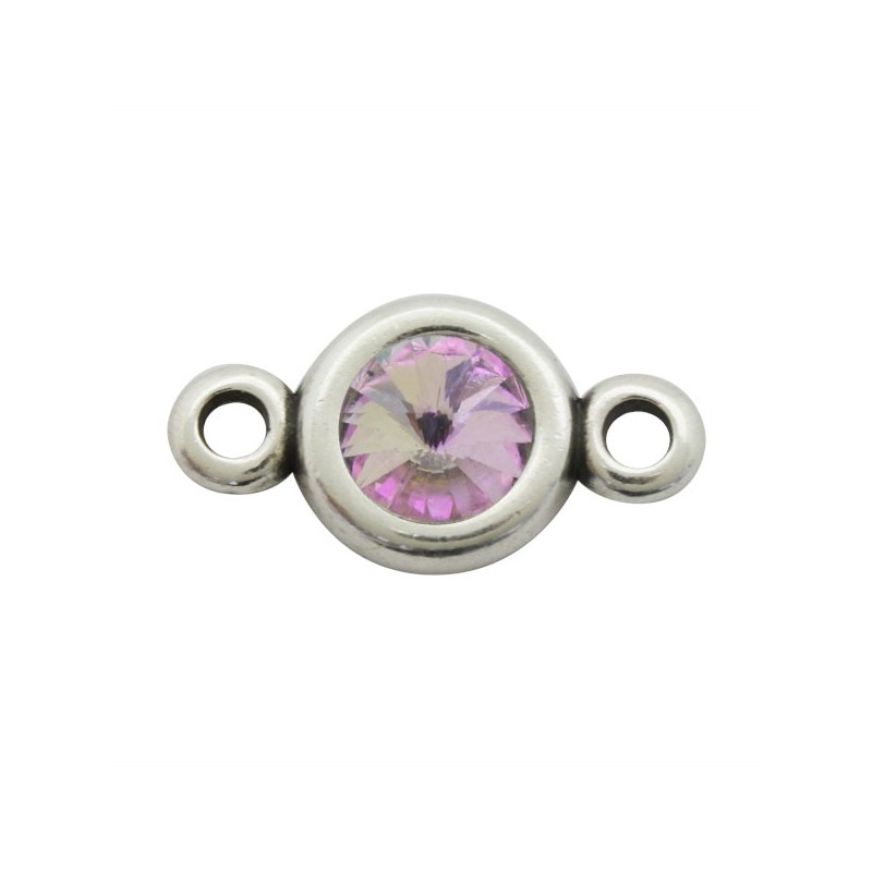 Entrepieza con dos asas en zamak con baño de plata con cristal Swarovski en color Vitrail Light. Le recomendamos pegar ambas piezas con nuestro pegamento especial para joyería con referencia 7405, ya que no vienen pegadas.