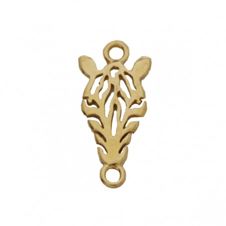 Entrepieza cebra en zamak con baño de oro. La bolsa contiene 1 unidad. El tamaño es de 15x8mm y tiene dos asas de 1,30mm.
