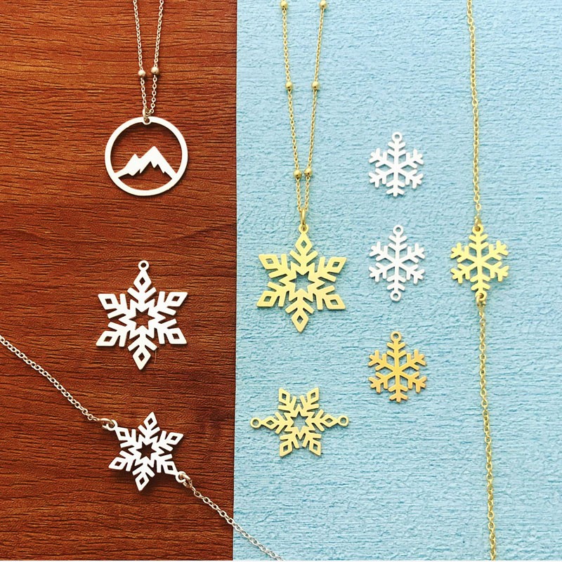 Entrepieza copo de nieve con dos asas en plata de ley 925 bañado en oro de 18k. Fabricado en España.
