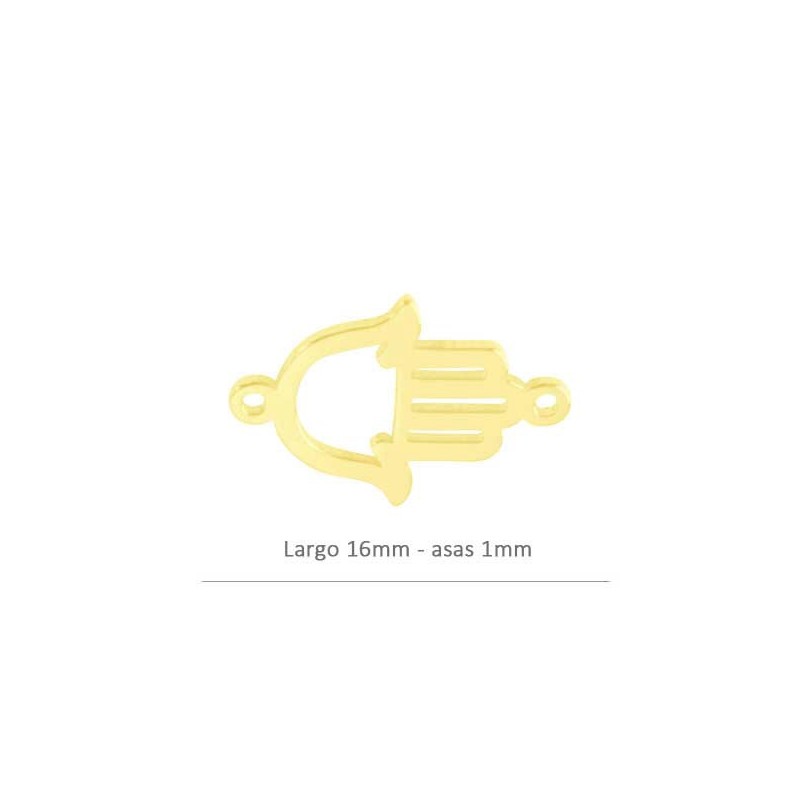 Entrepieza mano de fátima con dos asas en plata de ley 925 bañado en oro de 18k. Fabricado en España.