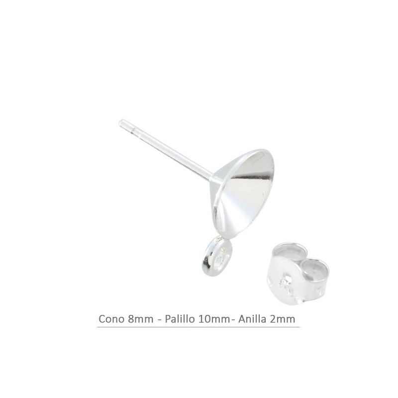 Pendiente cono 8mm con anilla para xirious Swarovski. Plata de ley