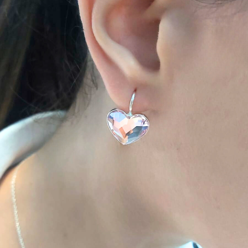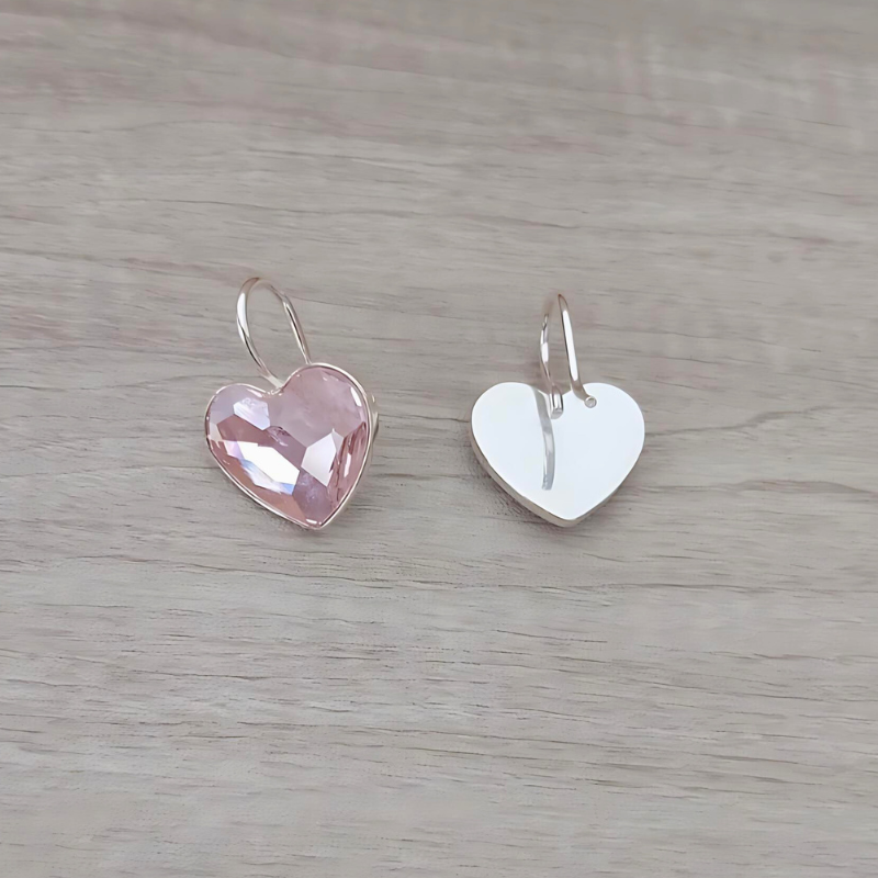 Pendientes gancho bisel corazón 14mm en plata de ley 925.