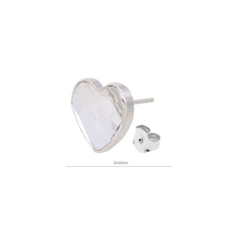 Pareja de pendientes bisel corazón en plata de ley 925 de 15x13mm especialmente diseñado para cristales de Swarovski corazón.