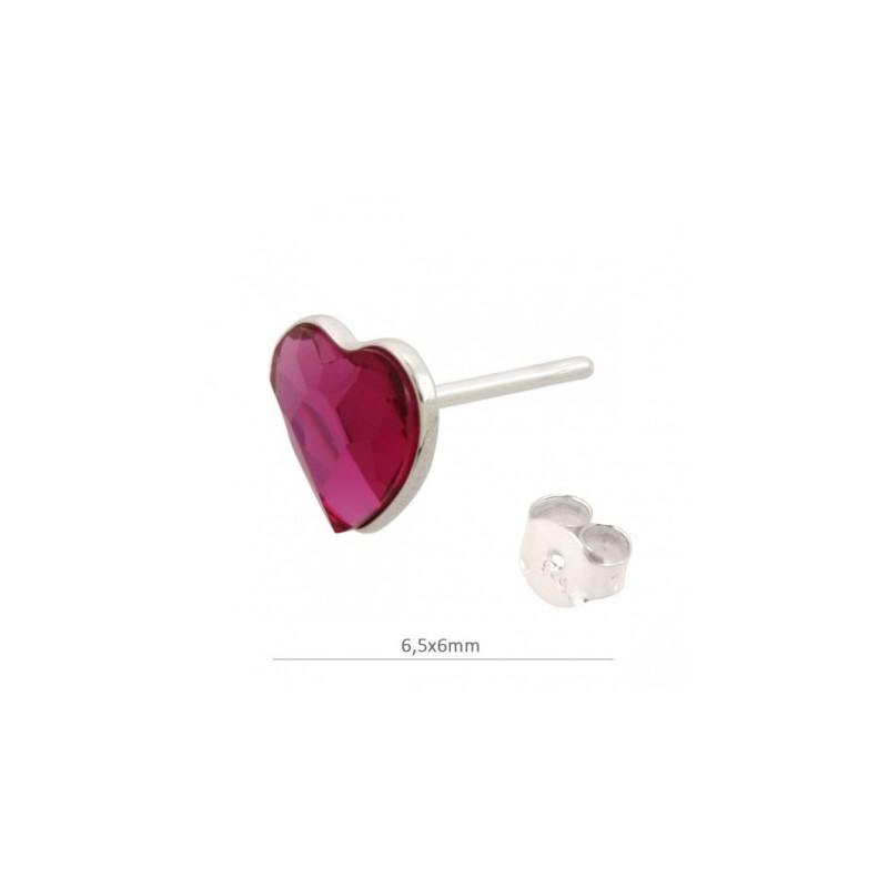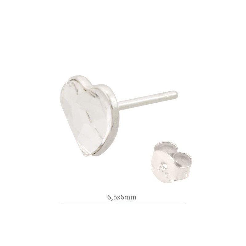 Pendientes mini corazón en plata con cristal de Swarovski de 6,5x6mm.