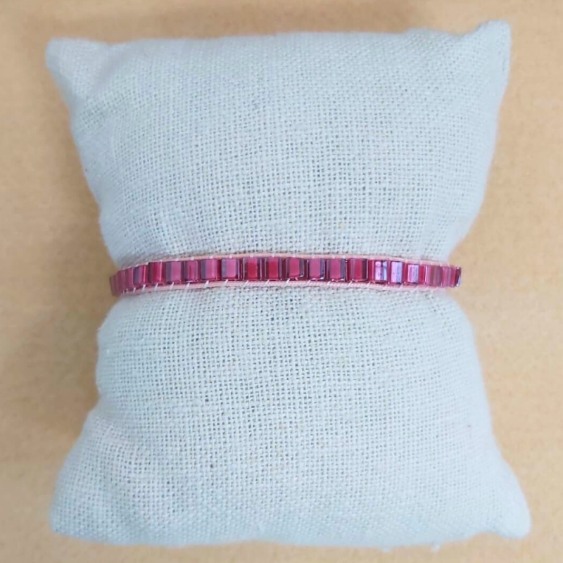 Cubos de la marca Miyuki de 4 mm en color Lined Pink Red. Los cubos son uniformes y tienen un agujero pasado de 1,6 mm.