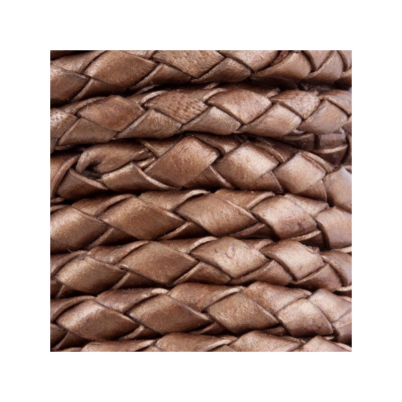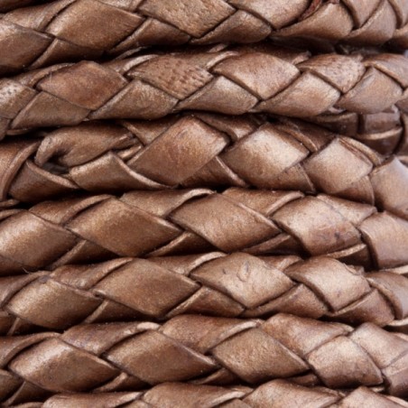 Cuero trenzado de 5mm de diámetro. Color oro viejo. El precio corresponde a 20cm y la venta se realiza en cantidades que sean múltiplo de 20cm. Por ejemplo: Puede adquirir 20cm, 40cm, 60cm, etc. Siempre que el rollo lo permita se entregará en una única tira sin cortar. La venta y el precio está indicado en tiras de 20cm, una unidad equivale a 20cm de producto. Por ejemplo: Si desea "20 centímetros" tendrá que poner en el apartado cantidad "1". Si desea "40 centímetros" tendrá que poner en el apartado cantidad "2". Si desea "1 metro" tendrá que poner en el apartado cantidad "5".