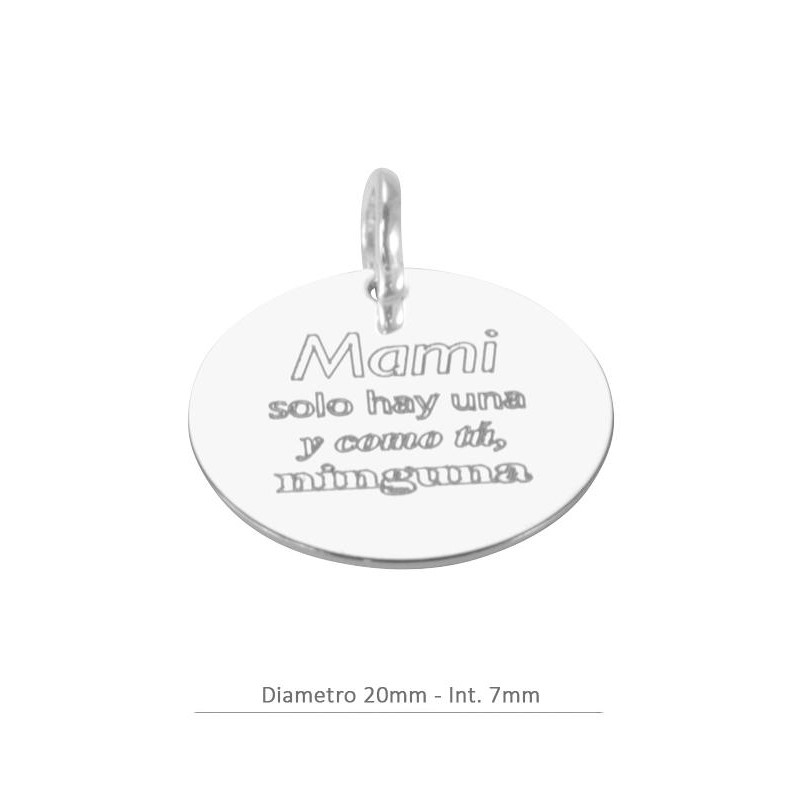Colgante redondo ø20mm "Mami solo hay una y como tú, ninguna". Anilla 7mm