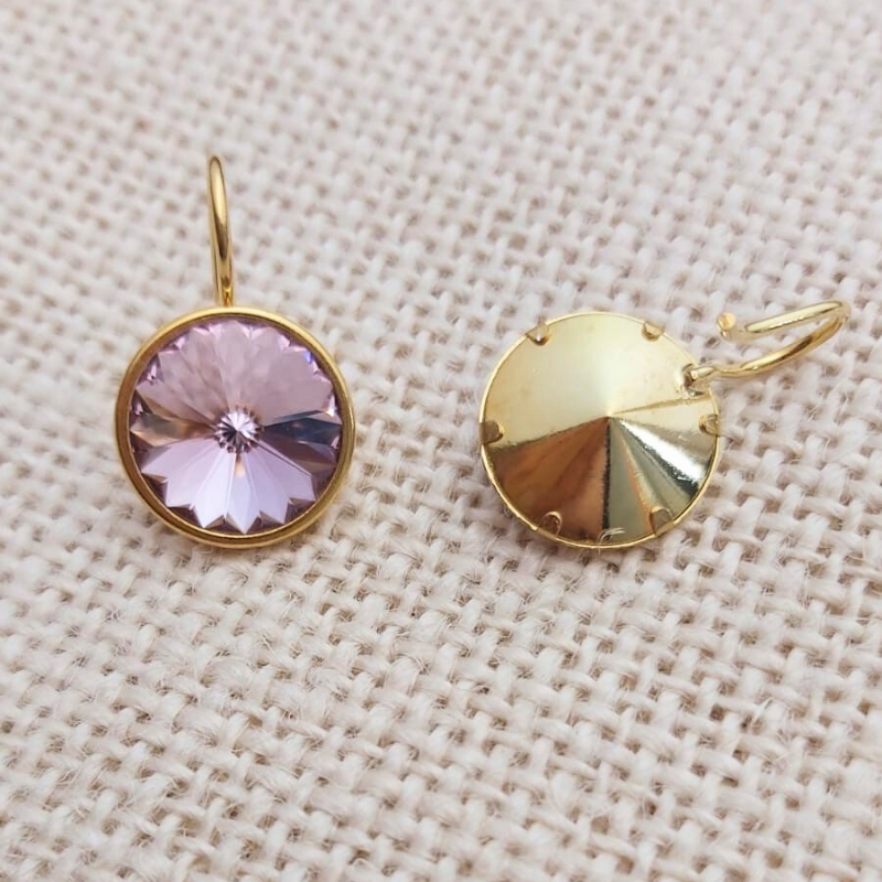 Os enseñamos en la imagen secundaria un ejemplo con nuestro gancho para rívoli de 14mm. Colocarlo es muy fácil, sólo hay que encajarlo en la base y bajar las patitas con cuidado con un alicate para no arañar la base del pendiente.
