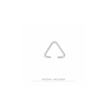 Portacolgante triangular pequeño, para colgante, en plata de ley. La bolsa contiene 10 unidades. El tamaño es de 5,2 mm. y el hilo es de 0,9 mm.