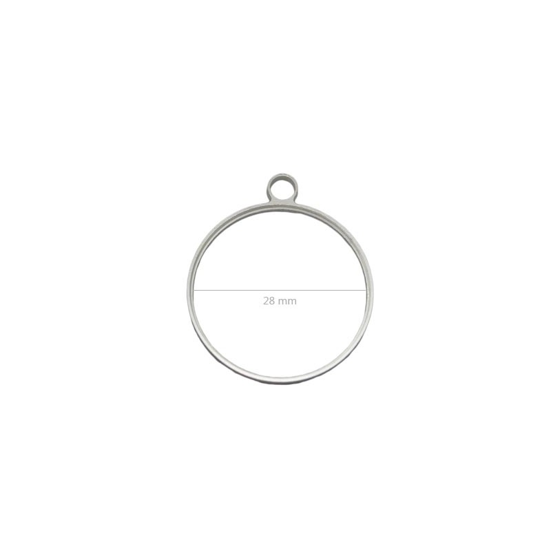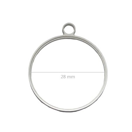 Engaste colgante circular tamaño pequeño, en plata de ley. La bolsa contiene 1 unidad. El diámetro es de 28 mm. y la anilla es de 4 mm.