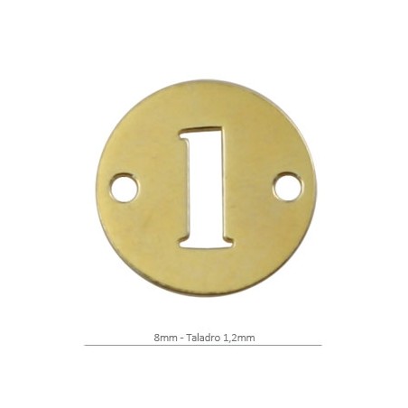 - Entrepieza redonda con números en plata con baño de oro. - El tamaño es de 8 milímetros con un taladro de 1,2 milímetros. - El precio es por unidad.