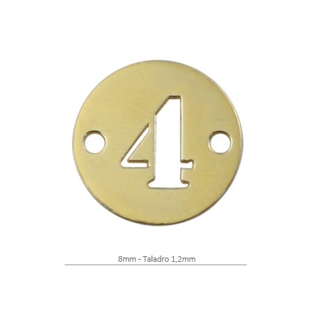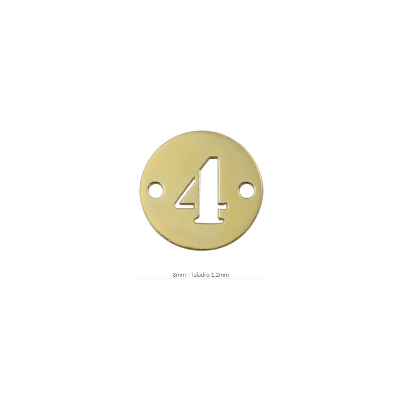- Entrepieza redonda con números en plata con baño de oro. - El tamaño es de 8 milímetros con un taladro de 1,2 milímetros. - El precio es por unidad.