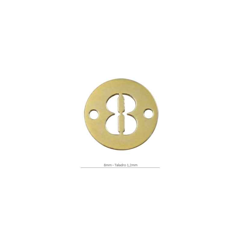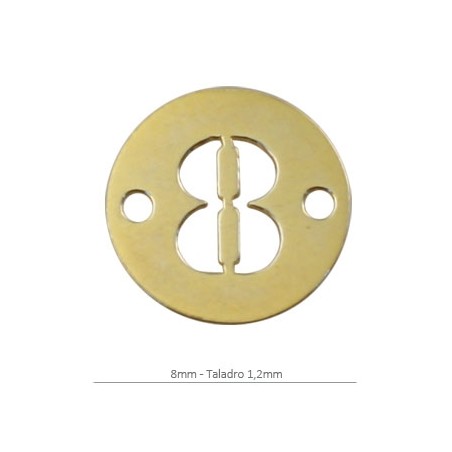 - Entrepieza redonda con números en plata con baño de oro. - El tamaño es de 8 milímetros con un taladro de 1,2 milímetros. - El precio es por unidad.