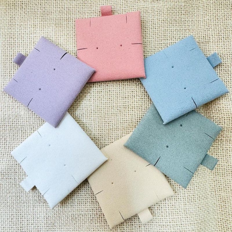 Tarjeta de terciopelo en color azul claro para presentar de manera bonita y elegante pendientes, gargantillas o pulseras.