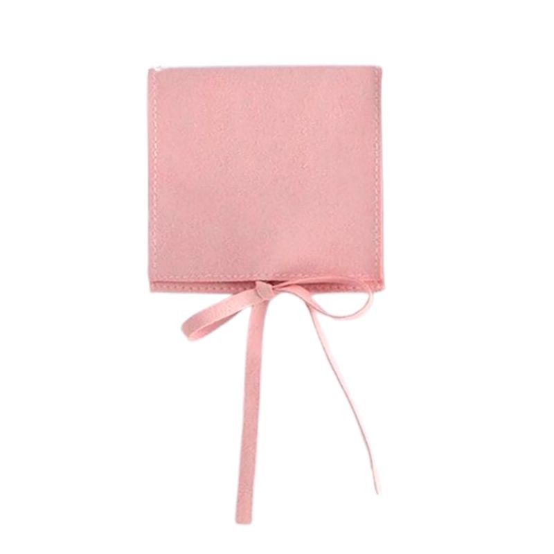 Bolsa de terciopelo de 8cm con cierre de lazo en color rosa.