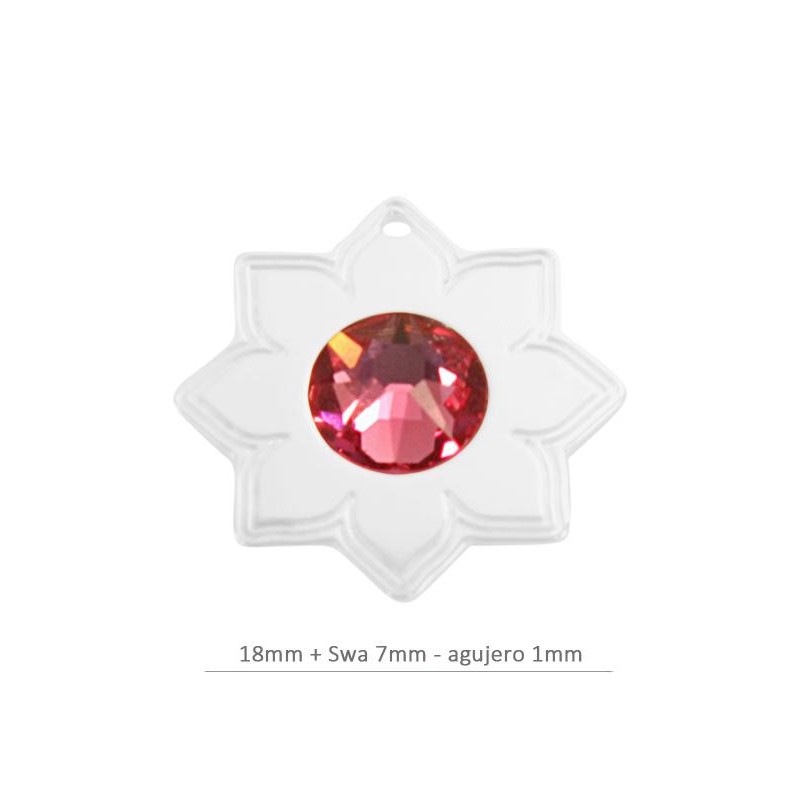 - 18mm + Swa 7mm - asa 1mm - Flor con cristal de Swarovski. - El precio es por bolsa y la bolsa contiene una unidad.