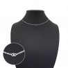 - Gargantilla completa con dos anillas abiertas soldadas en el centro de 35 cm de largo más 5 cm de cadena alargadora soldada en plata de ley 925.